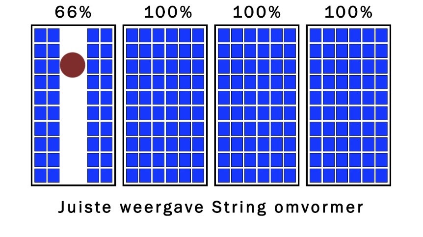 In de basis biedt een stringomvormer dus een prima oplossing om een goed rendement uit uw zonnepanelen te halen. De stringomvormers die Robisol toepast zijn voorzien van vlamboogdetectie en andere beveiligingsvoorzieningen om uw installatie goed te laten functioneren. Iets grotere omvormers zijn vaak voorzien van twee of meer MPP trackers. Een MPP-tracker is een omvormer-functie die voortdurend de combinatie stroom/spanning optimaliseerd. Dit is bijvoorbeeld handig als u uw dak tweezijdig van zonnepanelen wilt voorzien. De omvormer zorgt dan per zijde voor een optimaal rendement.